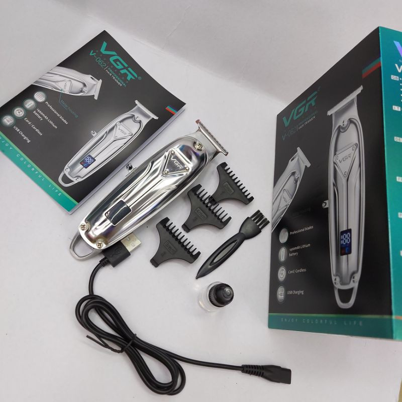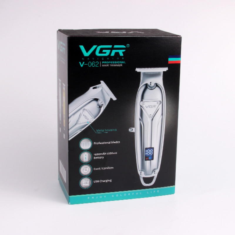 ماشین اصلاح مو صورت و سر وی جی ار مدل V-062 یک ماشین اصلاح کامل و پرقدرت می باشد که می تواند هم در منزل و هم در سالن آرایشگاه ها مورد استفاده قرار گیرد. ماشین اصلاح جمی دارای 4 شانه با اندازه های مختلف می باشد تا بتواند اصلاحی کامل و بی نقص را بر طبق خواسته شما انجام دهد. همچنین در کنار این ماشین اصلاح وی جی آر اهرمی جهت تنظیم تیغه نیز وجود دارد که با استفاده از آن می توان تغییرات مورد نظر را در اندازه برش اعمال نمود. V-062 را می توان هم با اتصال مستقیم به برق و هم به صورت بی سیم استفاده نمود . با تنها یک ساعت شارژ کردن V-062 ، این دستگاه به طور کامل شارژ شده و می تواند تا حدود دو ساعت شارژ دهی داشته باشد. جهت نظافت و نگهداری دستگاه نیز روغن مخصوص تیغه ها ارائه شده تا با استفاده از آن بتوان علاوه بر داشتن ماشین اصلاحی دقیق و تیغه هایی تیز ، طول عمر دستگاه را نیز افزایش داد.این دستگاه صفر زن و مخصوص اصلاح مو صورت و سر هستش و بسیار خوشدست و اصلاحی دقیق و 3 عدد سایز شانه 2 و3و4 را داراست قاب این دستگاه تمام استیل است این دستگاه سریع شارژ و با 5 دقیقه شارژ 1 بار اصلاح را میتوانید انجام دهید یکی از مزیت های این دستگاه این است که در صورت نداشتن شارژ با سیم نیز میتوان استفاده کرد و دارای نمایشگر دیجیتال میباشد .