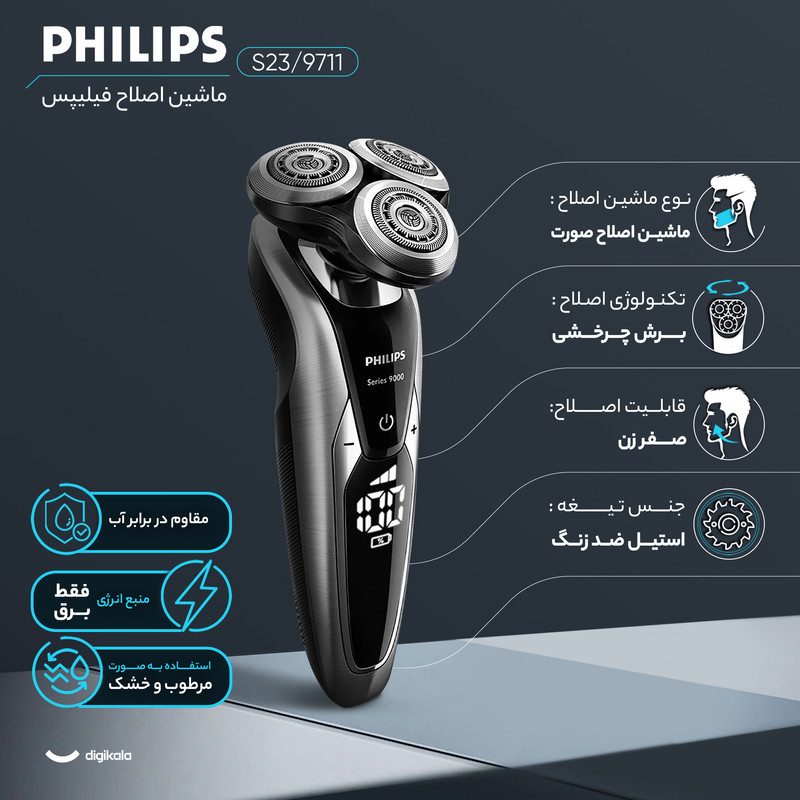 - دارای صفحه LCD با قابلیت نمایش میزان شارژ به صورت عدد- تیغه های قابل انعطاف در 8 جهت مختلف- قابلیت تنظیم سرعت اصلاح در 3 حالت مختلف- دارای دستگاه شستشوی سریع- دارای سَری برای اصلاح خطی با قابلیت تنظیم شدن در 5 اندازه مختلف- ولتاژ کاری: 100-240 ولت
