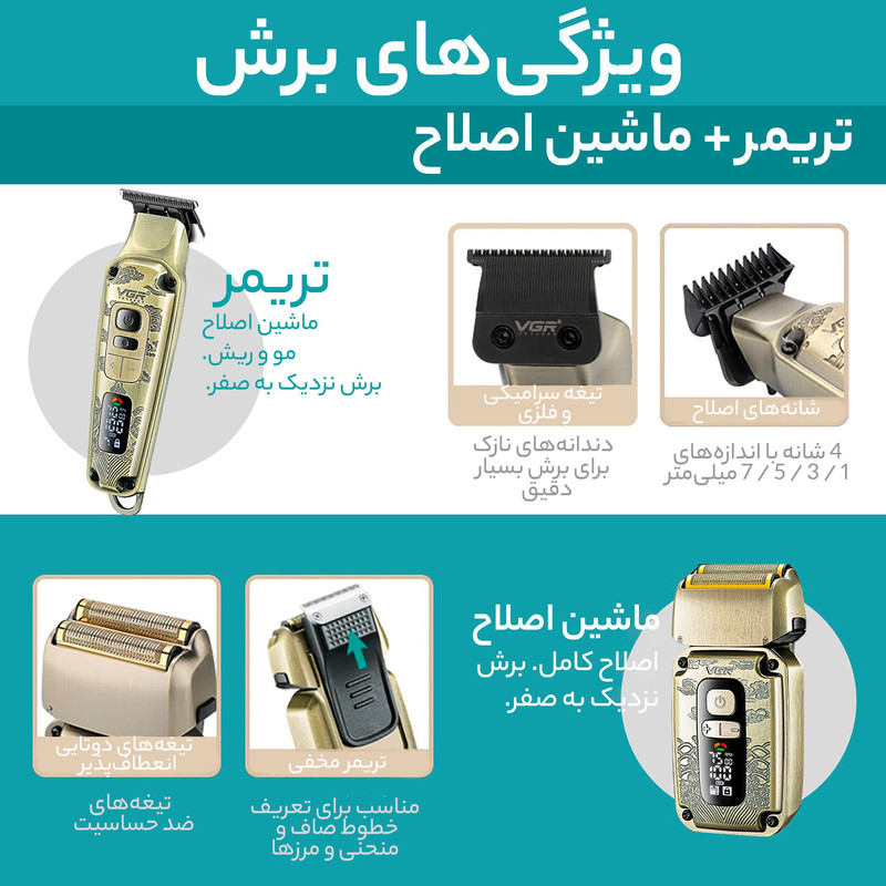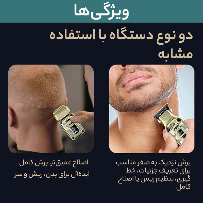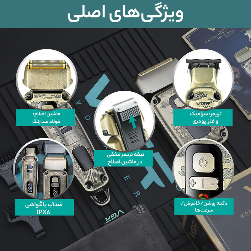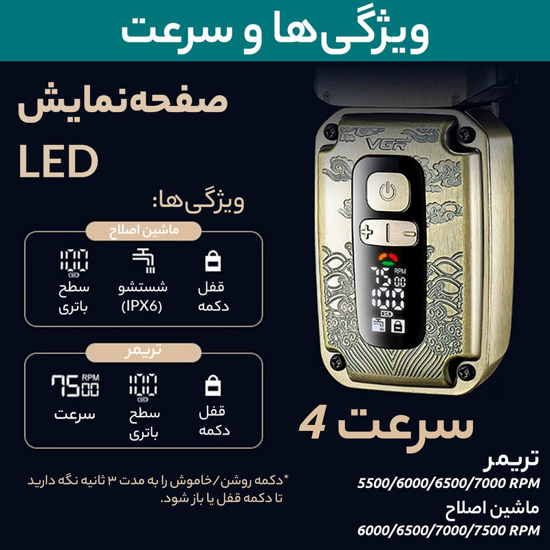 طراحی ارگونومیک , ضد آب , قابلیت اصلاح با شماره صفر , قابلیت تنظیم سرعت