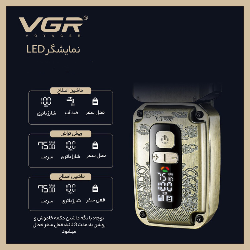 قابلیتها : نمایش وضعیت باتری , استفاده به صورت خشک و مرطوب , طراحی ارگونومیک , قابلیت اصلاح با شماره صفر , قابلیت تنظیم سرعت