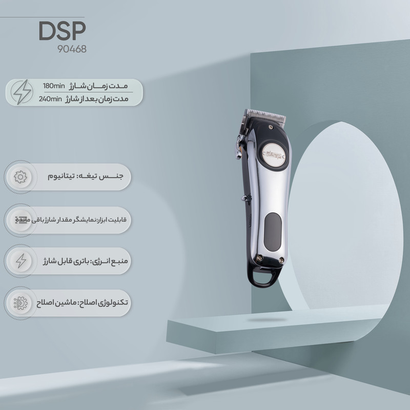 ماشین اصلاح دارای تیغه تیتانیومی و باتری قدرتمند لیتیومی / شامل 4 شانه تنظیم و فرچه / نمایشگر مقدار شارژ باقی مانده