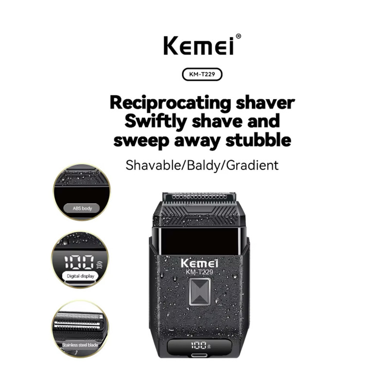 دارای تیغه حرفه ای دو منظوره برای اصلاح و کوتاه کردن مو، ضد آب، دارای نمایشگر LCD، دارای توربو سرعت