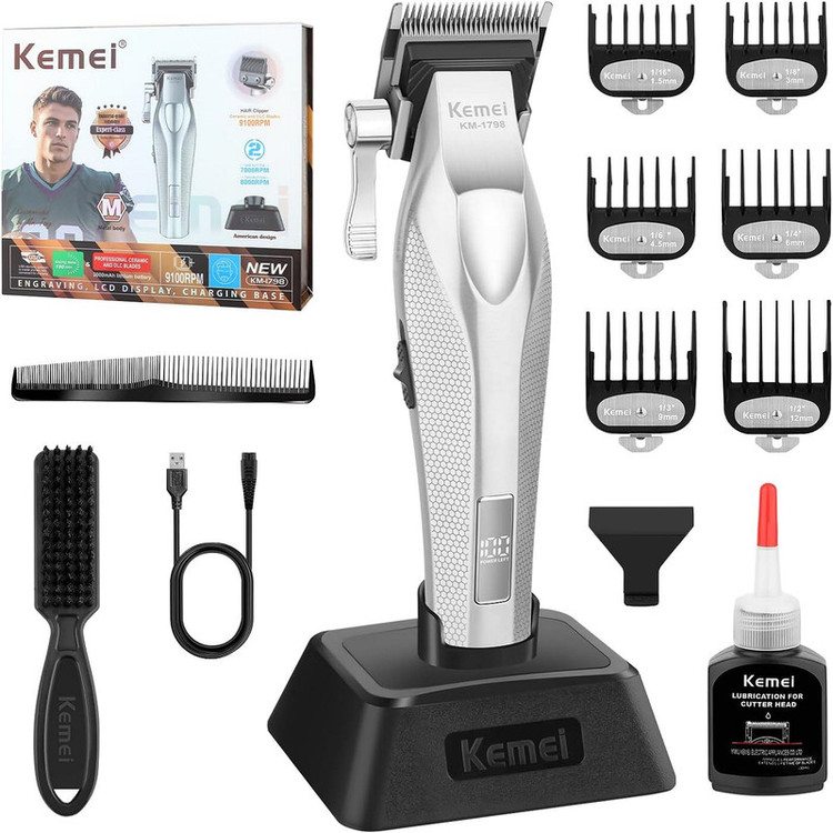 6عدد شانه اصلاح - برس فید - پایه شارژ - کابل شارژ - روغن اصلاح - دفترچه راهنما