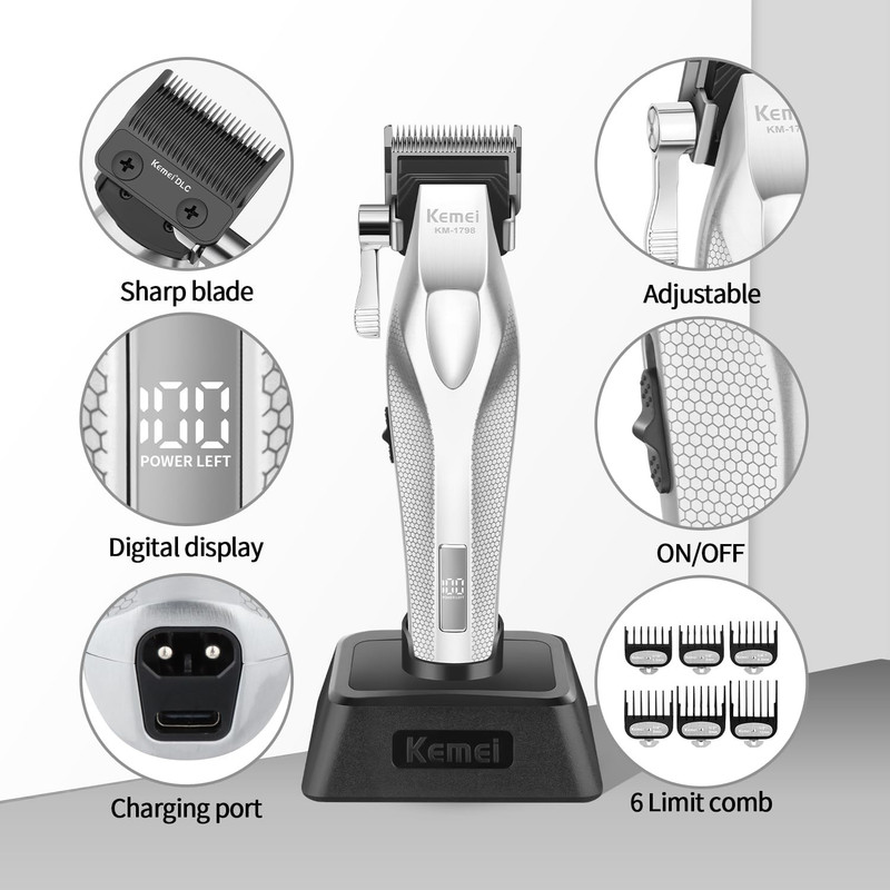 6عدد شانه اصلاح - برس فید - پایه شارژ - کابل شارژ - روغن اصلاح - دفترچه راهنما