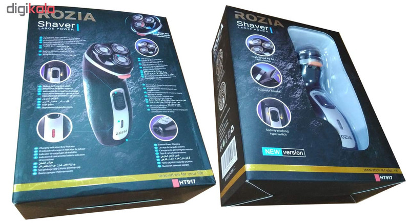ماشین اصلاح سه تیغ Rozia HT917 با موتور از جنس پالادیوم-نقره و با سرعت بالا وسیله ای مناسب برای اصلاح روزانه ی شما است. تیغه های کاملا تیتانیومی آن سازگار با انواع پوست است و بعد از اصلاح، قابل شسشتشو و تماس مستقیم با آب است. همچنین از تریمر پشت ماشین میتوان برای تنظیم خط ریش و پشت گوش استفاده کرد(مطابق دفترچه راهنما شیوه استفاده بیان شده است). این ریش تراش سه تیغ قابلیت استفاده هم با سیم و هم به صورت شارژی را دارد و با یک ساعت شارژ کردن 45 دقیقه قابلیت نگه داری شارژ دارد. نشانگر جلوی دستگاه شاخص میزان شارژ و میزان کار است. تیغه های آن با لبه ی دوبل و با سرعت زیاد برای اصلاح نرم و دقیق سازگار با انواع پوست است.