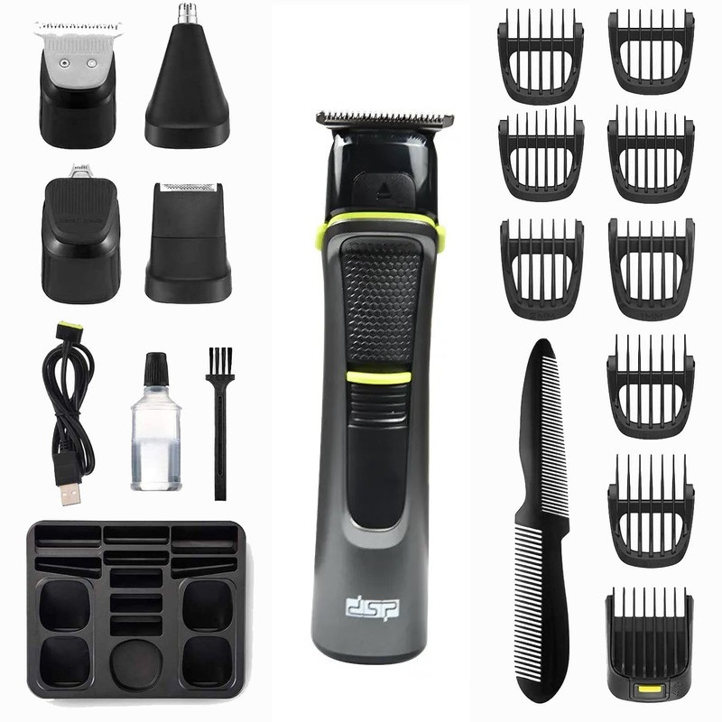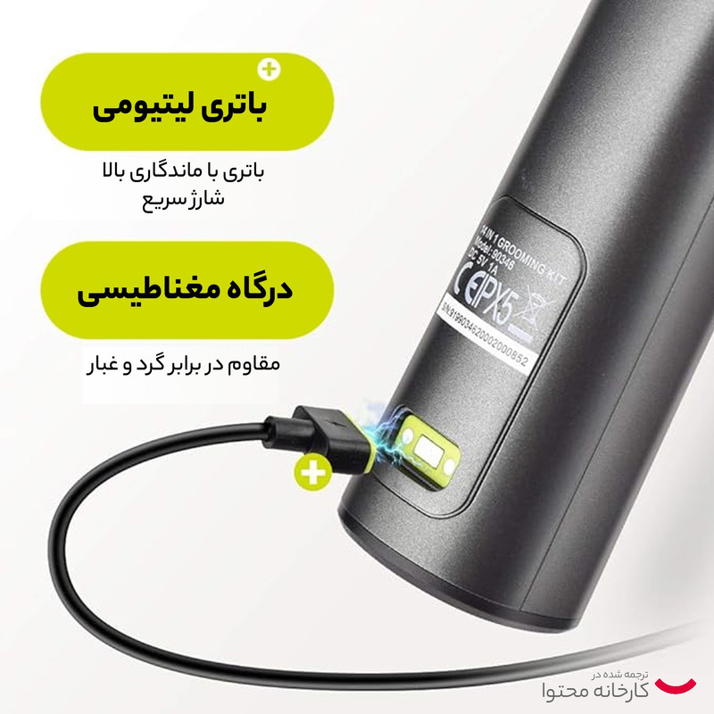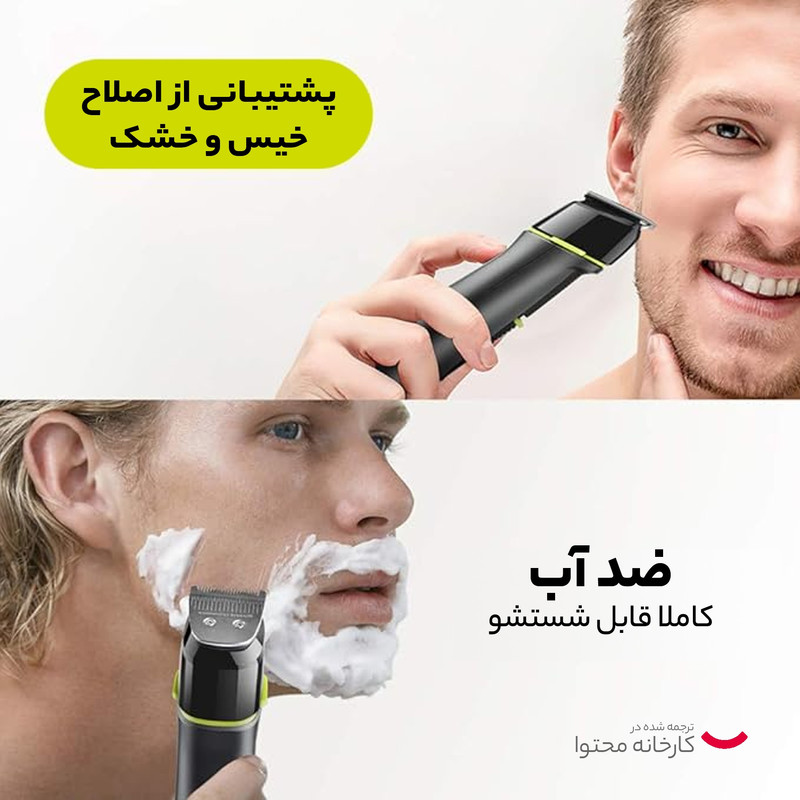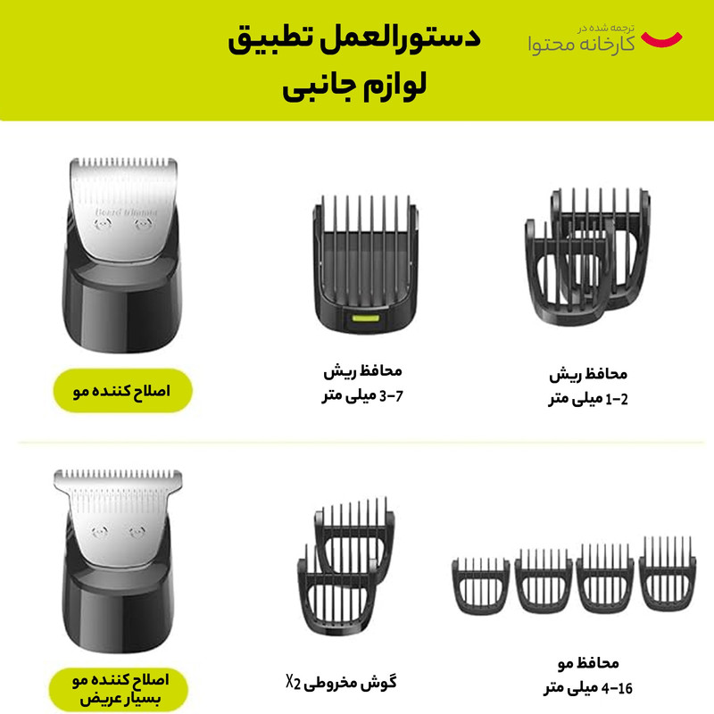 -ست کامل اصلاح -دارای 9 عدد شانه در اندازه های مختلف دارای شانه دوطرفه دارای شانه مخصوص تنظیم شونده متغیر از شماره 3 تا 7 میلیمتر