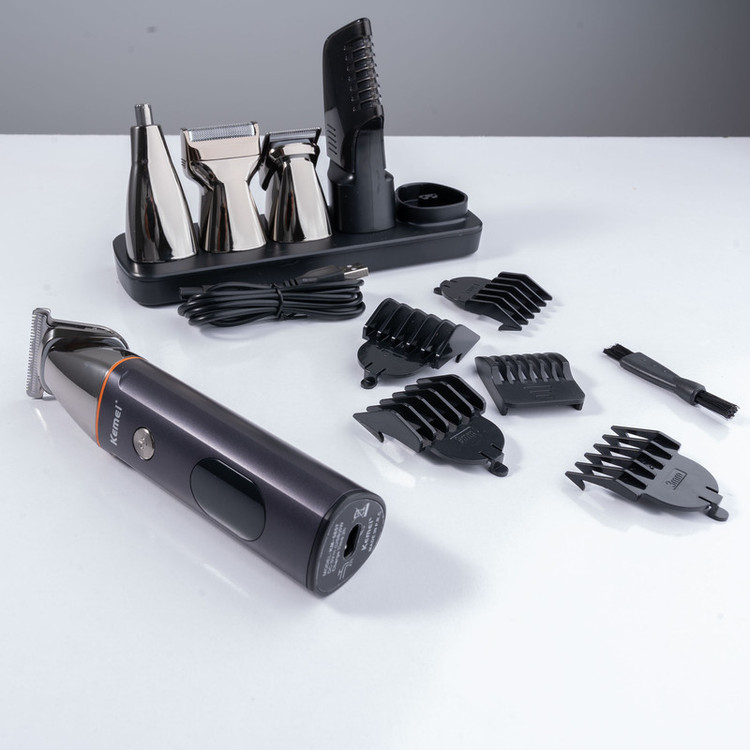 مقاوم در برابر پاشش آب ، دارای گواهی IPX6 /توان مصرفی 5 وات/دارای باتری 600 میلی آمپر ساعتی/دارای 4 سری مختلف تریمر برای خط زنی /سری فویلی برای اصلاح ریش/ سری مناسب برای اصلاح موی بینی / سری مناسب برای مرتب کردن ابرو