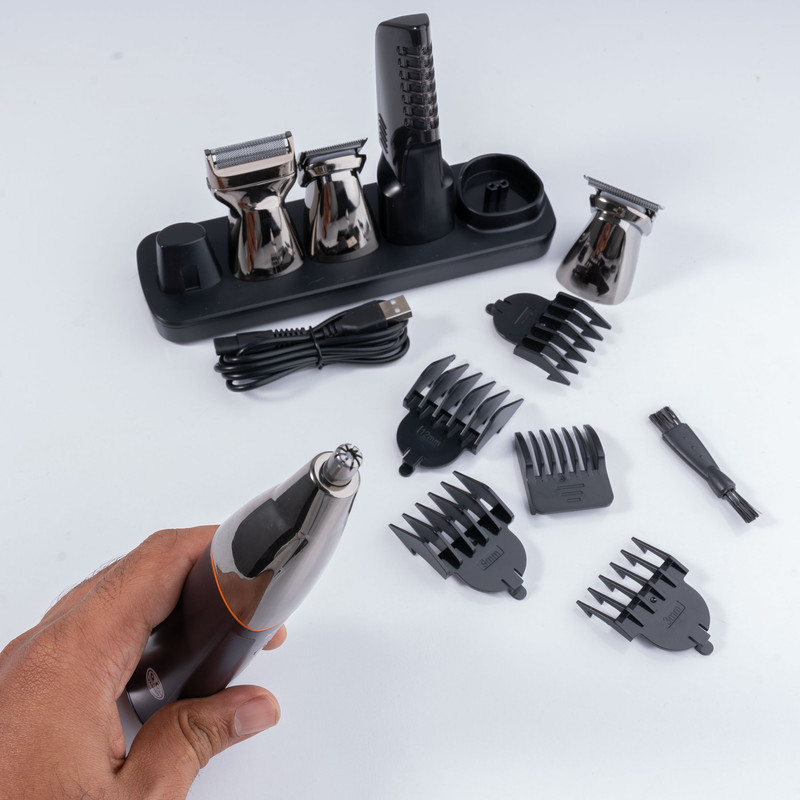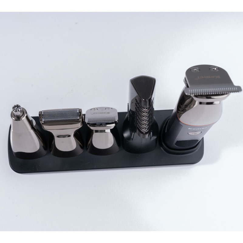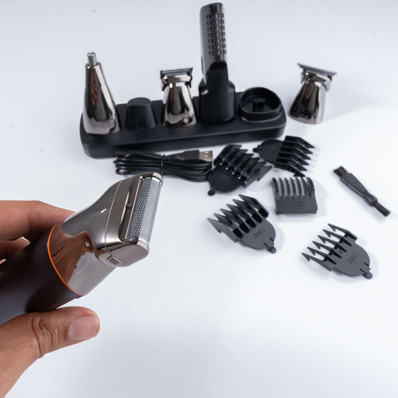 مقاوم در برابر پاشش آب ، دارای گواهی IPX6 /توان مصرفی 5 وات/دارای باتری 600 میلی آمپر ساعتی/دارای 4 سری مختلف تریمر برای خط زنی /سری فویلی برای اصلاح ریش/ سری مناسب برای اصلاح موی بینی / سری مناسب برای مرتب کردن ابرو