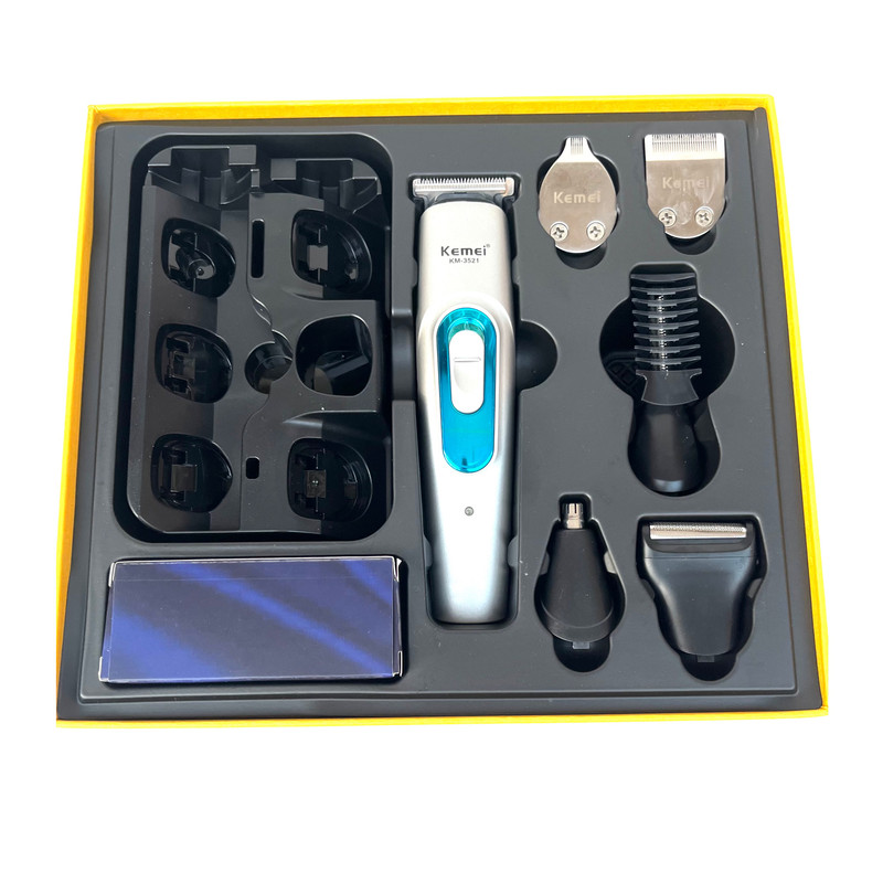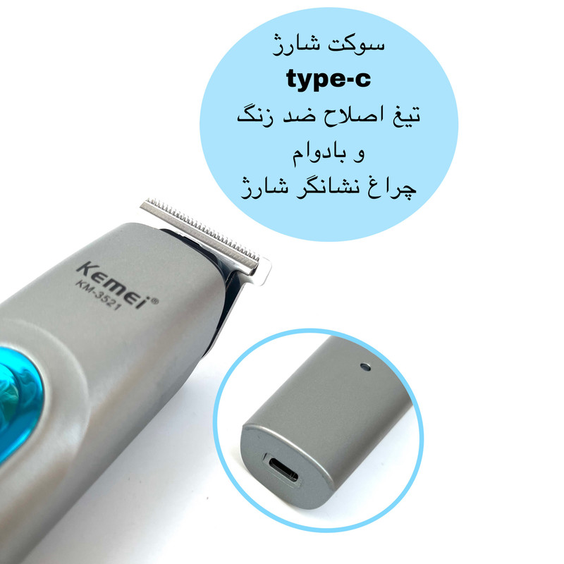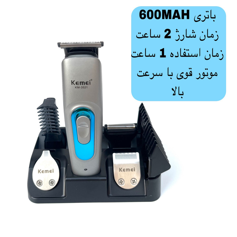 دارای 5 عدد سری متفاوت جهت اصلاح موی صورت/بدن/بینی و گوش-دارای 4 عدد شانه-استند نگه دارنده-چراغ نشانگر شارژ-