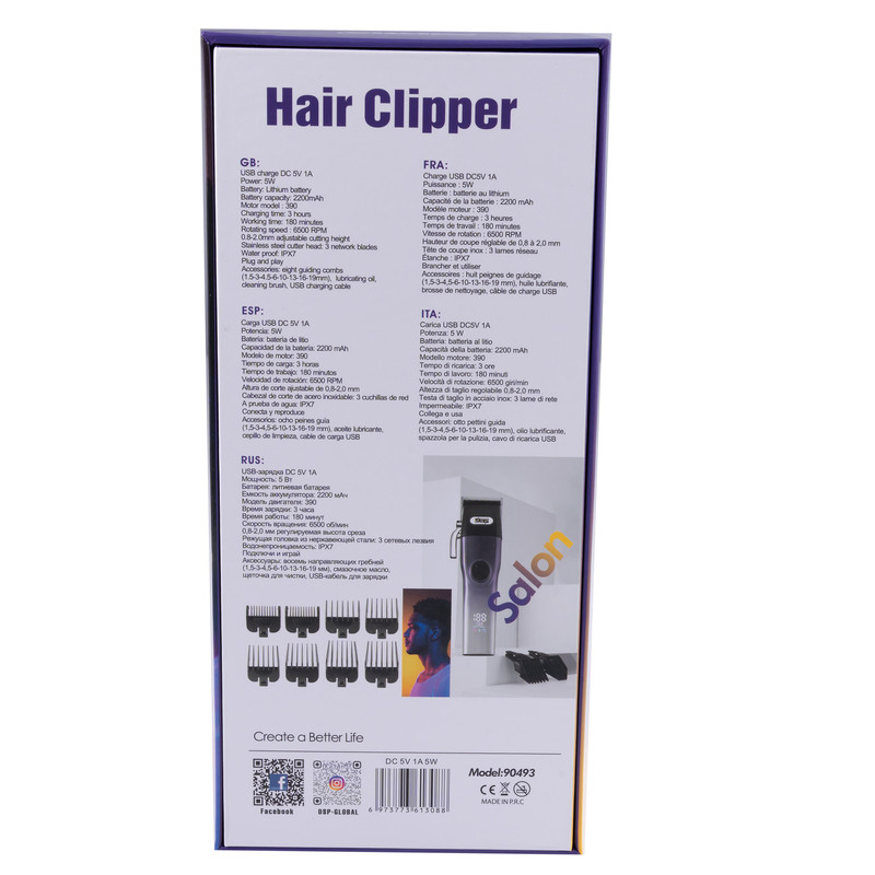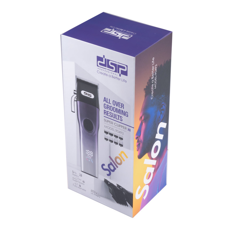 ماشین اصلاح دارای تیغه تیتانیومی و باتری قدرتمند لیتیومی / شامل 8 شانه تنظیم و فرچه / نمایشگر مقدار شارژ باقی مانده