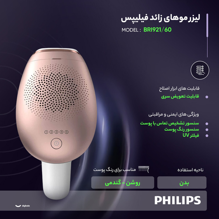 ویژگیهای ایمنی و مراقبتی: سنسور تشخیص تماس با پوست , سنسور رنگ پوست , فیلتر UV