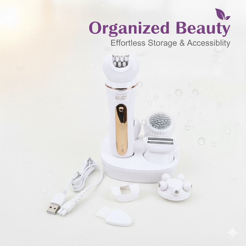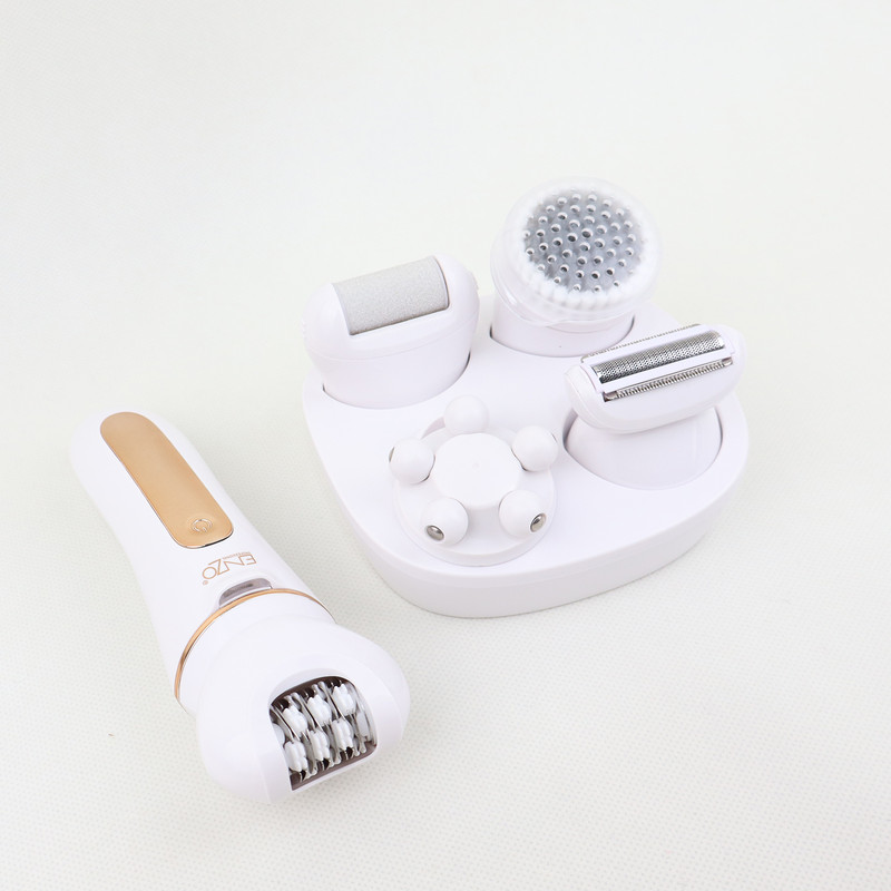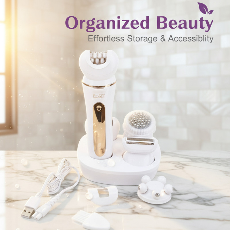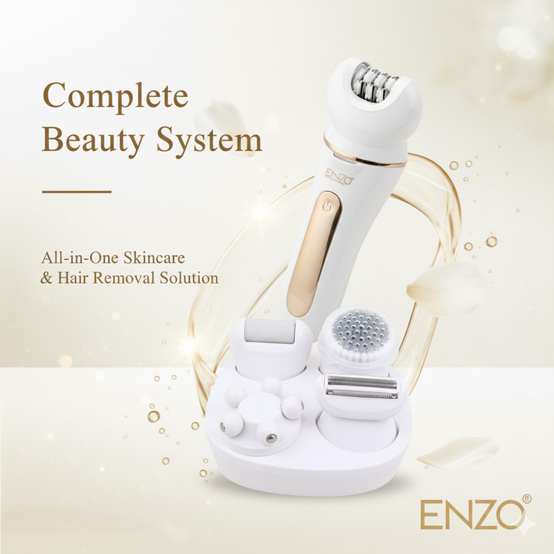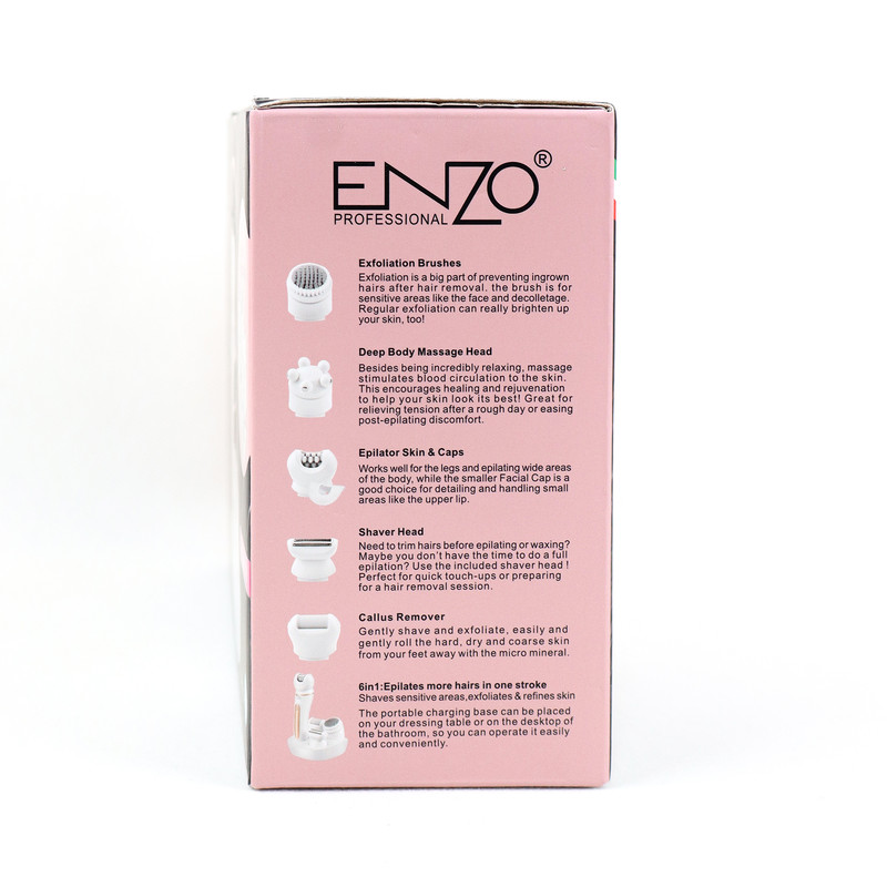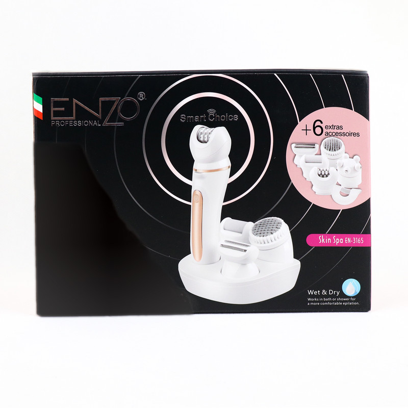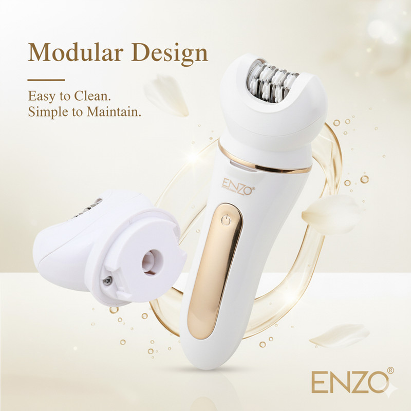 اپیلاتور چندکاره ENZO Professional مدل EN-3165 یک موکن شارژی حرفهای برای اصلاح تمیز، لایهبرداری و ماساژ پوست در خانه است؛ موهای بسیار ریز را از ریشه میگیرد تا پوستی یکدست و ابریشمی داشته باشید. سری چرخان با انحنای بدن هماهنگ میشود و به کمک کلاهک ماساژ با لرزش فعال، اپیلاسیون را ملایمتر و مؤثرتر میکند. قابلیت Wet & Dry اجازه میدهد دستگاه را بهصورت بیسیم در حالت خشک یا زیر دوش استفاده کنید و باتری داخلی فقط در حدود ۳ ساعت شارژ شده و تا ۶۰ دقیقه کار مداوم ارائه میدهد. این پک ۶ کاره، همهچیزِ مراقبت از پوست را یکجا فراهم کرده است: برس لایهبردار برای پیشگیری از موی زیرپوستی و شفافتر شدن پوست، سری ماساژ بدن برای بهبود گردش خون و رفع خستگی، کلاه اپیلاتور مخصوص نواحی وسیع بدن و ظریف صورت، سری شیور برای کوتاهکردن سریع یا مرتبسازی خط بیکینی و زیربغل، و کالوسریموور برای نرم کردن پاشنه و نواحی زبر؛ پایه شارژ جمعوجور نیز نگهداری و دسترسی را ساده میکند. طراحی ارگونومیک و بدنه خوشدست استفاده طولانیمدت را راحت کرده و این دستگاه را به انتخابی ایدهآل برای اصلاح پا، دست، زیر بغل، بیکینی و نواحی ظریف صورت بدل میسازد. اگر بهدنبال خرید اپیلاتور زنانه شارژی ضدآب با کارایی کامل و قیمت مقرونبهصرفه هستید، ENZO EN-3165 با عملکرد ۶ در ۱، اصلاحی دقیق، لایهبرداری منظم و مراقبت کامل پوست را در یک دستگاه حرفهای به شما میدهد.