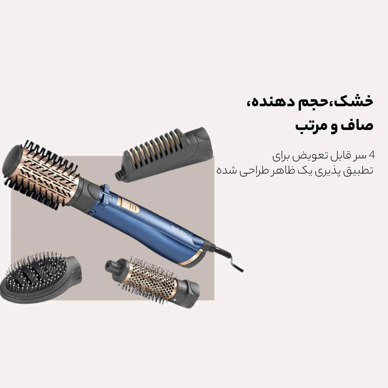 اقلام همراه سشوار: سری شانهدار , سری برسدار گرد باریک , سری برسدار گرد پهن , سری برسدار تخت