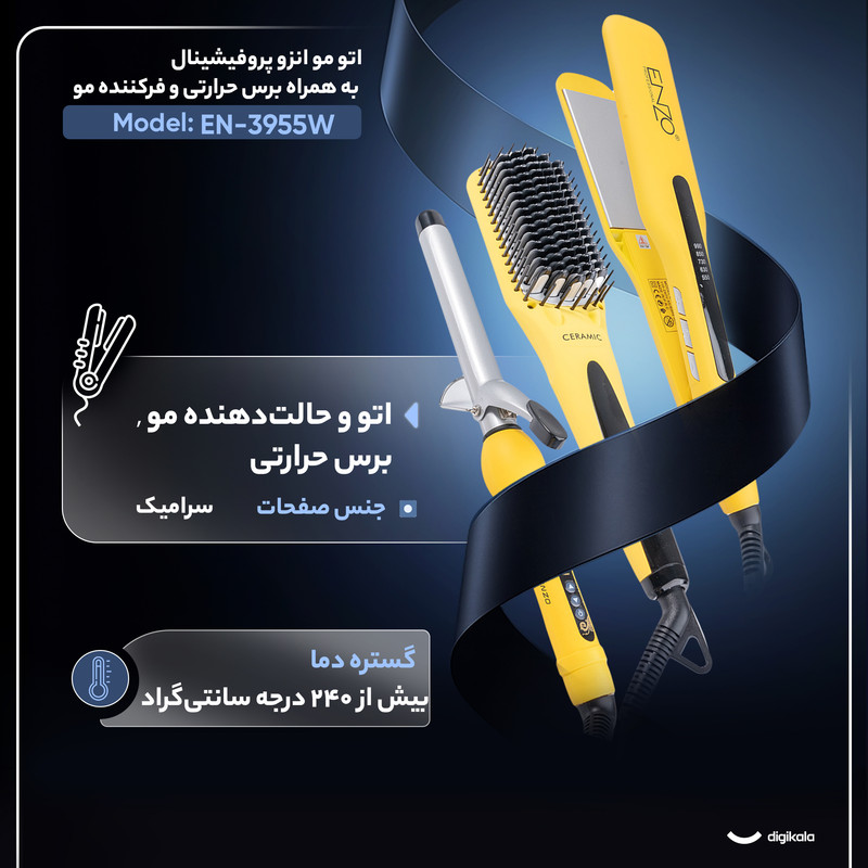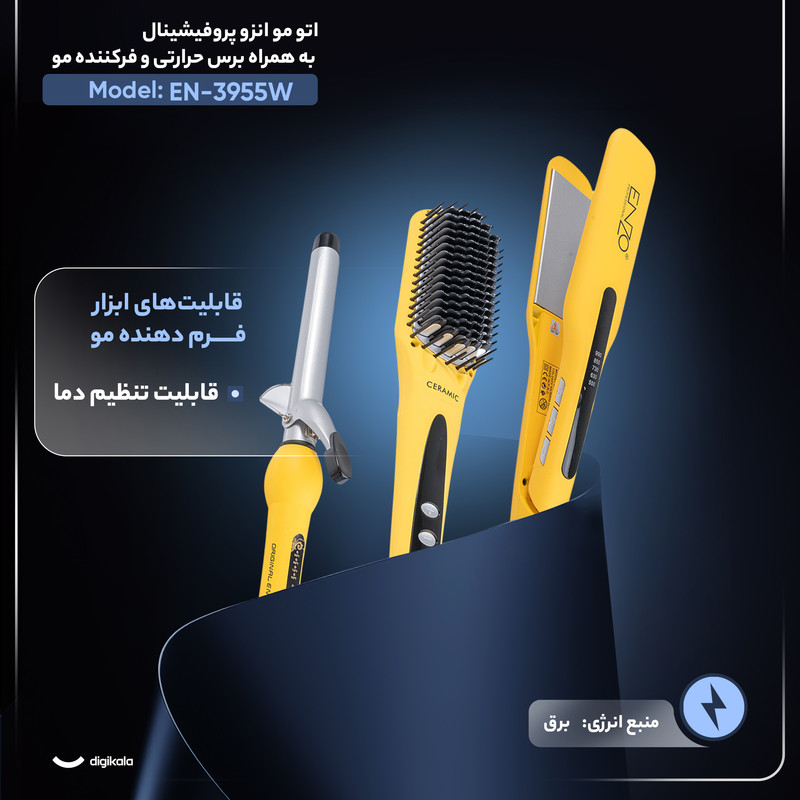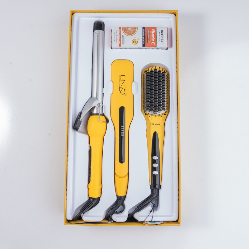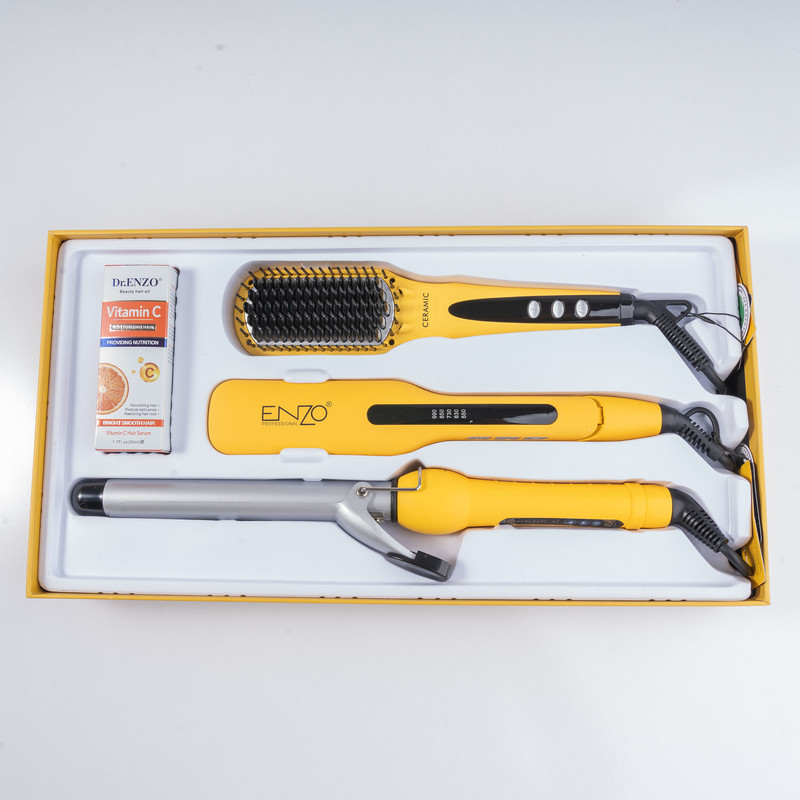 یک عدد برس حرارتی - یک عدد فرکننده - روغن مرطوب کننده و درخشان کننده مو با حجم 50 میلی لیتر