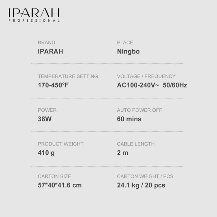گرمایش یکنواخت , گرمایش سریع , خاموشی خودکار , صفحه نمایش دما , سیم گردان ۳۶۰ درجه , مناسب برای موهای خشک و مرطوب , وزن سبک , طراحی ارگونومیک , قابلیت تنظیم دما