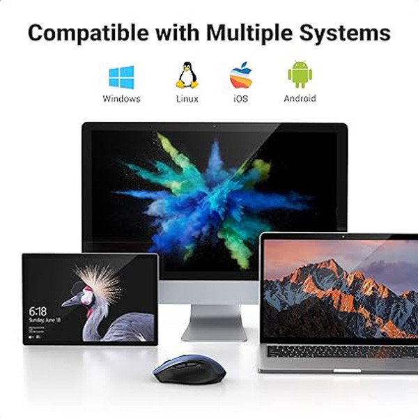 ماوس بی سیم یوگرین مدل MU006-15064 دارای طراحی ارگونومی با دقت بسیار بالا برای طراحی ، بازی و لذت بردن از کار با کامپیوتر می باشد. این موس دارای 5 کلید سایلنت می باشد تا بدون صدا احساس فشردن کلید های موس را انتقال دهد. دارای گریپ در اطراف موس از جنس پالم برای ایجاد حس بهتر به هنگام کار کردن. نحوه اتصال این موس به شکل بی سیم و به 2 صورت بلوتوث 5.0 و دانگل USB 2.4GHz می باشد. دقت این موس قابلیت تنظیم در 4 حالت تا 4000DPI را دارد از این رو سرعت و دقت بالایی در رزولوشن های 8K و 4K خواهید داشت.با توجه به طراحی آن در صورت استفاده از باتری مرقوب می تواند تا 18 ماه باتری آن عمر داشته باشد. با تمامی دستگاه های که از موس به شکل USB و یا بلوتوث پشتیبانی می کنند سازگار می باشد همچنین با تمامی سیستم عامل های ویندوز، مک و لینوکس سازگار می باشد.