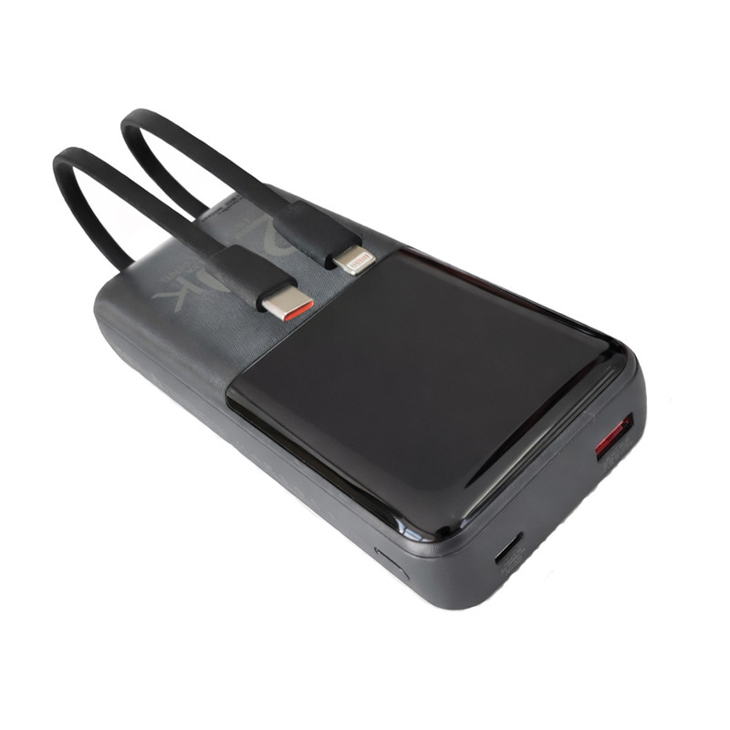 یک پورت خروجی USB-A دو کابل متصل از نوع Type-C و Lightning با قابلیت فست شارژ ماکزیمم توان خروجی ۲۲.۵ وات صفحه نمایش ال سی دی