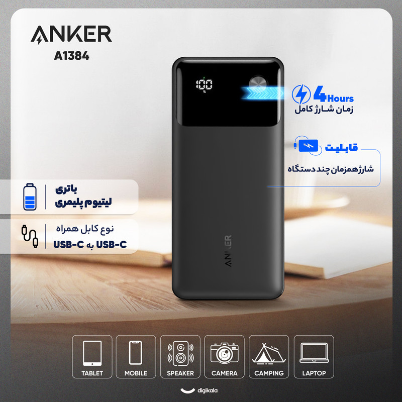 نمایش دیجیتالی میزان شارژ/ حالت شارژ قطرهای/ سازگار با پروتکلهای PD و QC و SCP / ولتاژ ورودی: 5V⎓3A / 9V⎓3A / 12V⎓1.5A / 15V⎓2A / 20V⎓1.5A (حداکثر ~30W) / ولتاژ خروجی: USB-C: 5V⎓3A / 9V⎓3A / 10V⎓2.25A / 12V⎓1.5A / 15V⎓2A / 20V⎓1.5A (حداکثر ~30W)