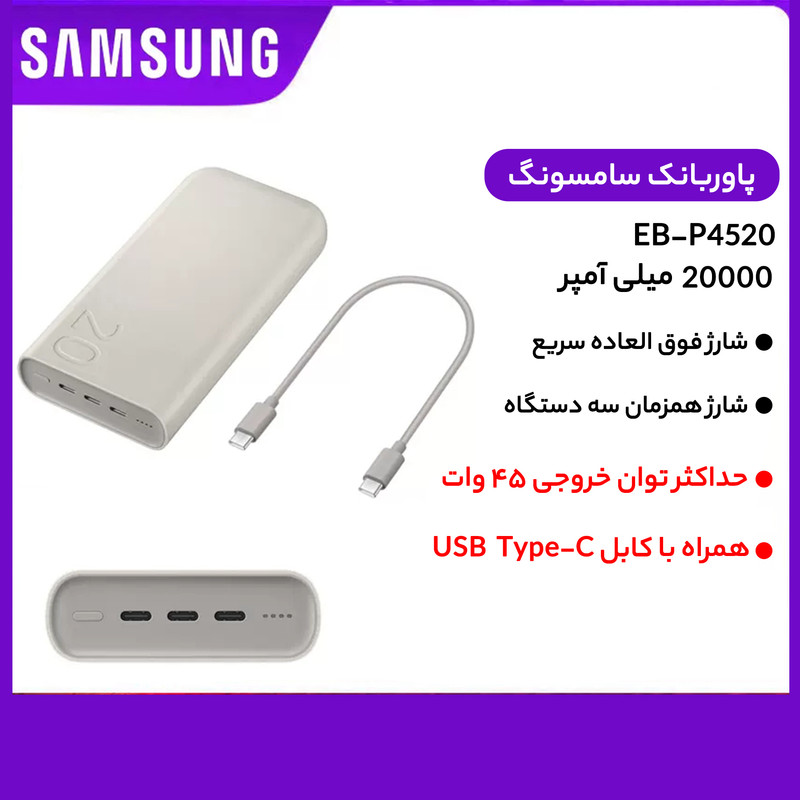 قابلیت شارژ Super Fast 2.0 با توان 45 وات / PD 3.0 PDO/PPS / شارژ همزمان 3 دستگاه