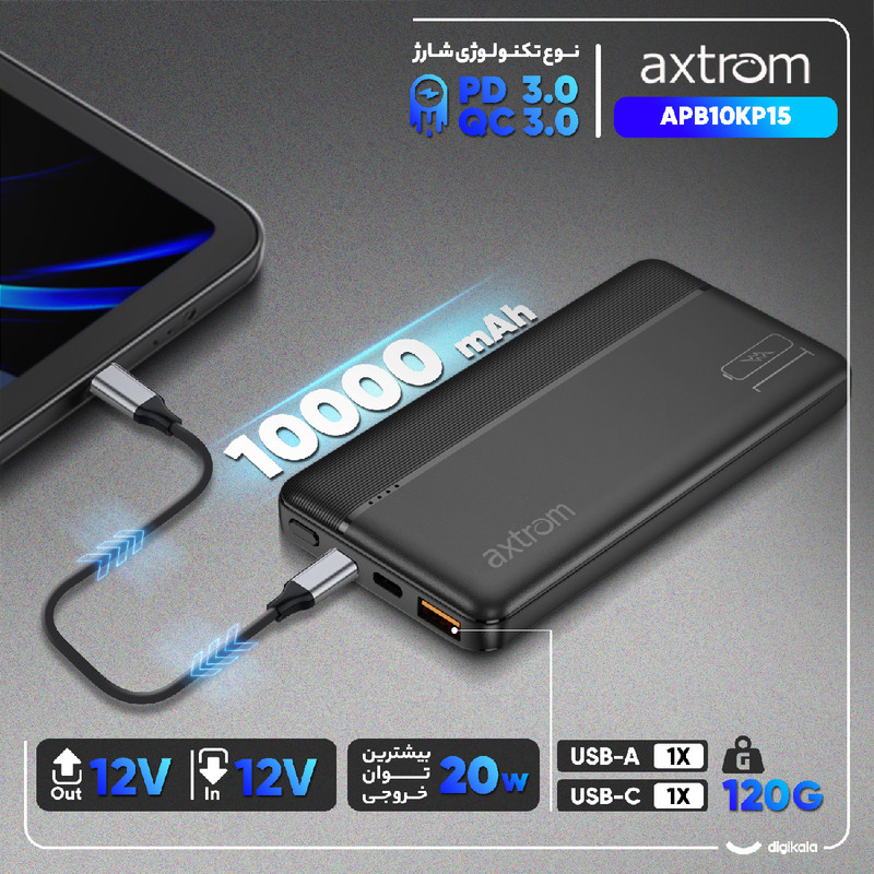 - دارای دو درگاه Type-C با فناوری Power Delivery -خروجی 20 وات -پشتیبانی از Quick Charge 3.0 -پشتیبانی از Apple Fast Charge - دارای درگاه USB-A با فناوری Quick Charge - ظرفیت 10000 میلی آمپر ساعت - سلولهای گرید A