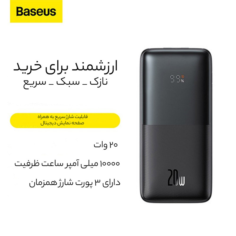 مشخصات فنی: دارای توان کلی 20 وات در شارژ سریع / دارای یک پورت ورودی USB-C مشترک / دارای یک پورت خروجی USB-C و سه USB-A