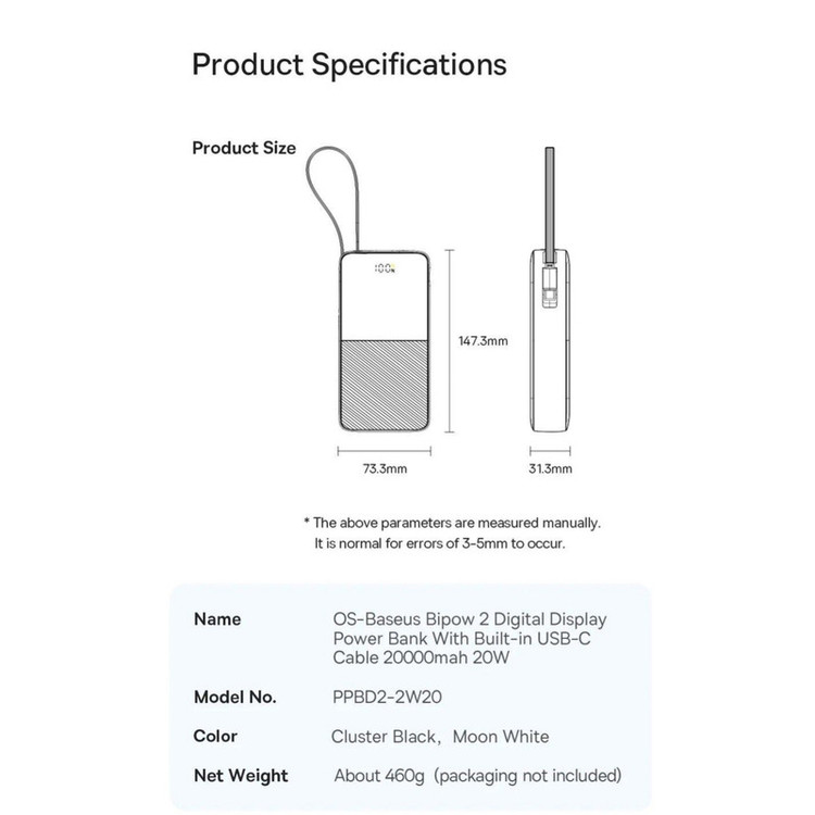 مشخصات فنی: درگاه تایپ سی ورودی/خروجی است | صفحه نمایش دیجیتال میزان باتری