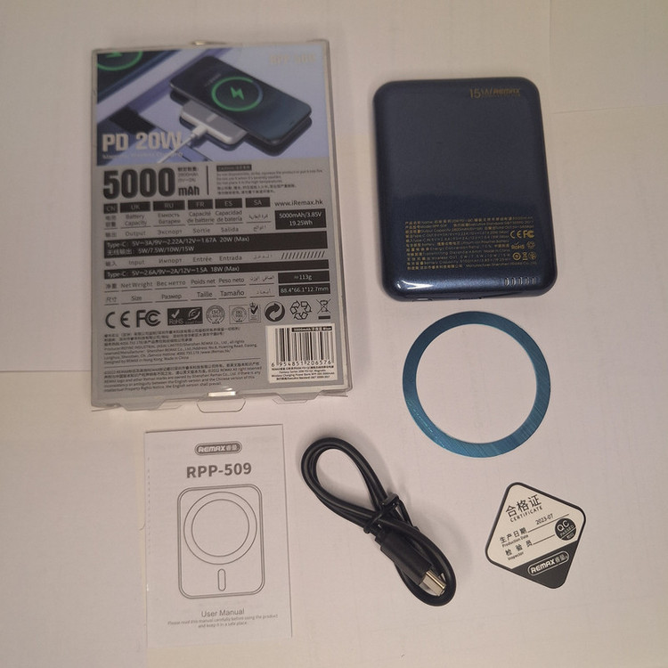 پاوربانک 20 وات ریمکس مدل RPP-509 ظرفیت 5000 میلی‌آمپرساعت به همراه کابل USB-C