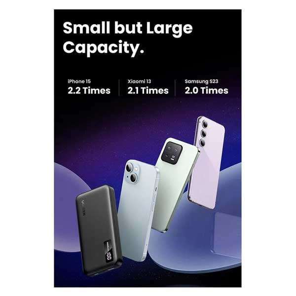 ظرفیت باتری: 10000 میلیآمپر ساعت توان خروجی: 22.5 وات دارای نشانگر دیجیتال