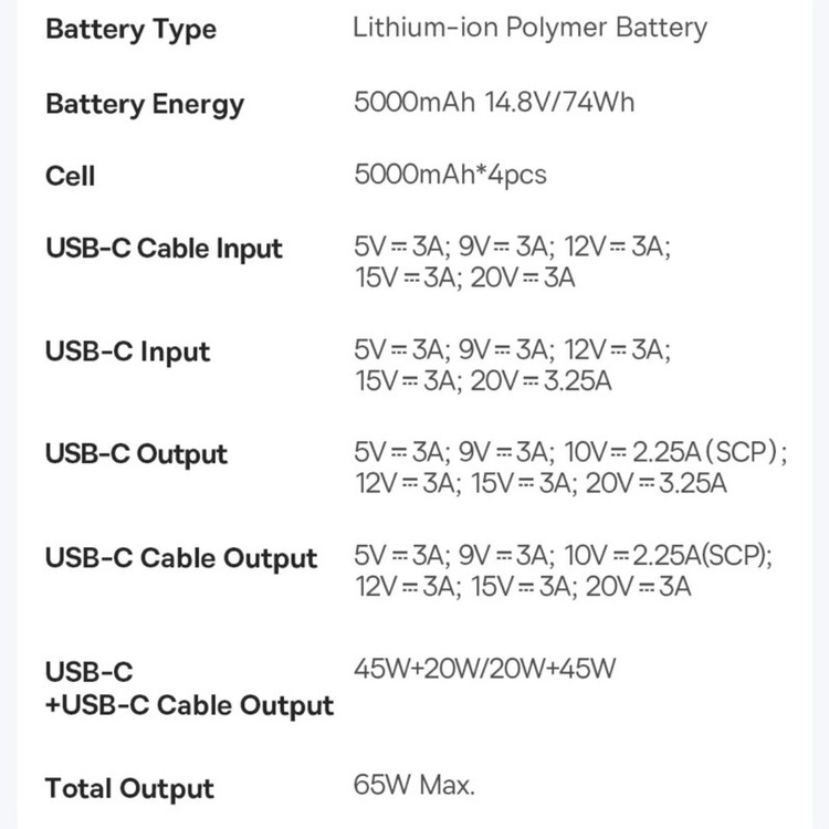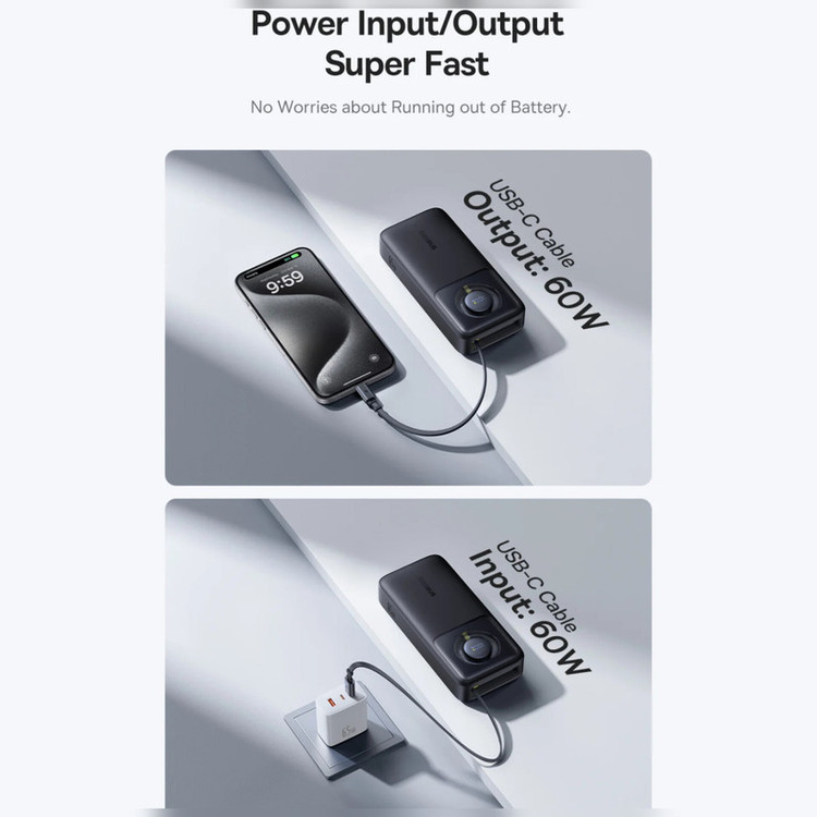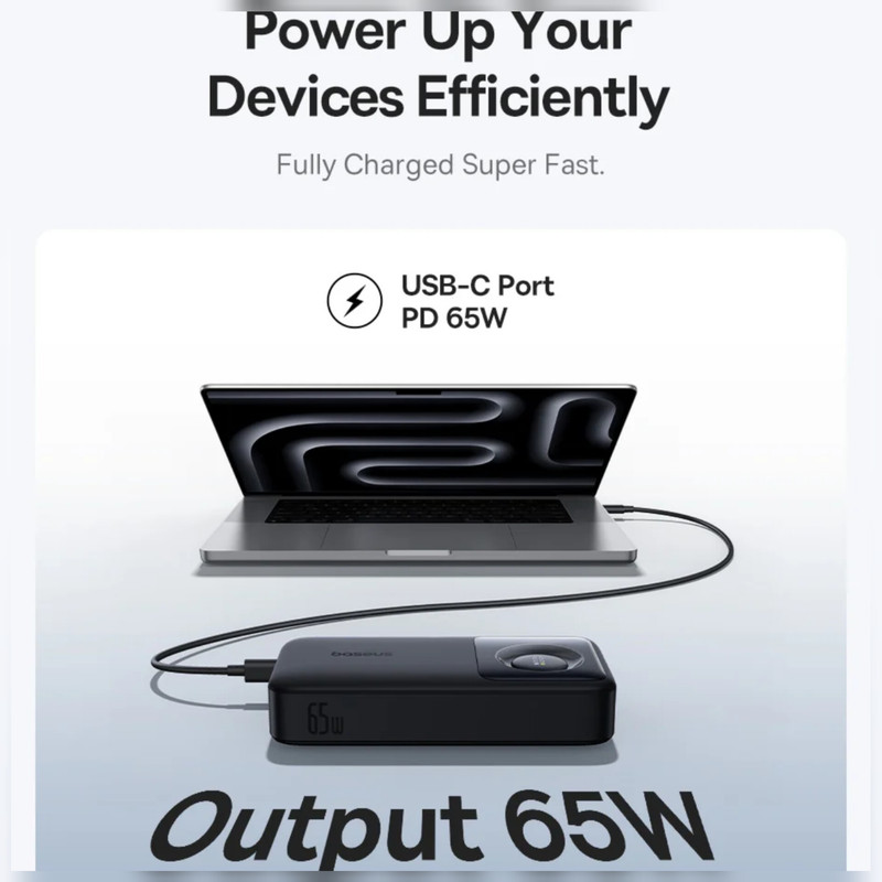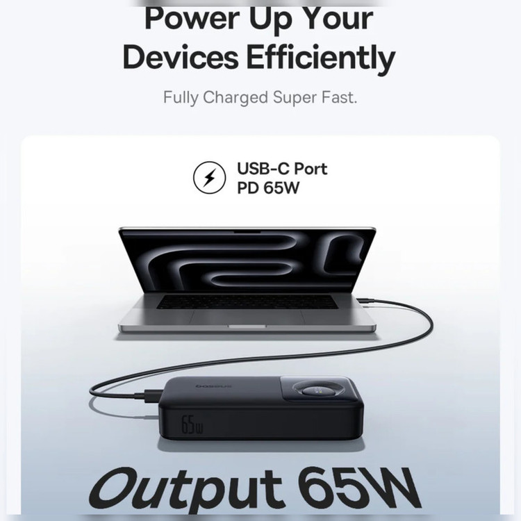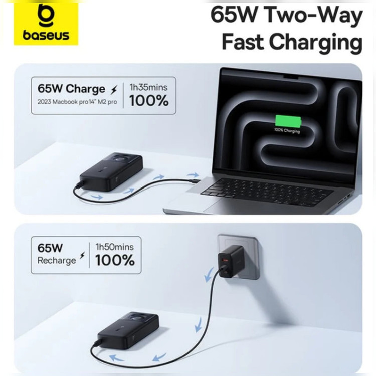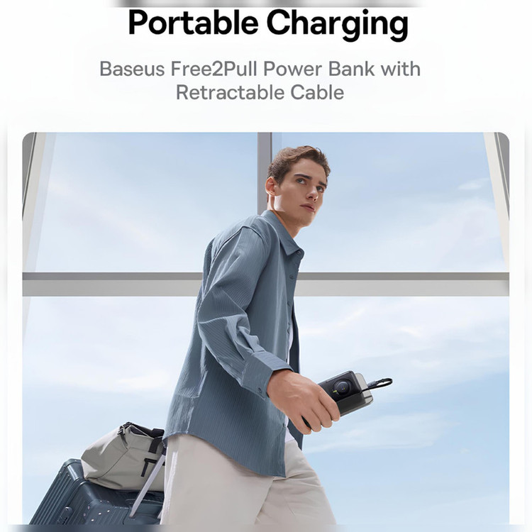 پاوربانک بیسوس مدل Free2Pull 65W ظرفیت 20000 میلی آمپر ساعت به همراه کابل USB-C