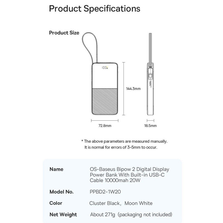 مشخصات فنی: درگاه تایپ سی ورودی/خروجی است | صفحه نمایش دیجیتال میزان باتری