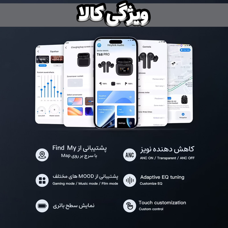 استاندارد ضد آب IPX4 - دارای حالت ANC و Transparency - دیسپلی ( صفحه نمایش ) لمسی و هوشمند - قابلیت تنظیم اکولایزر - دارای اپلیکیشن ( QR CODE داخل دفترچه اسکن شود ) - قابلیت FIND MY -