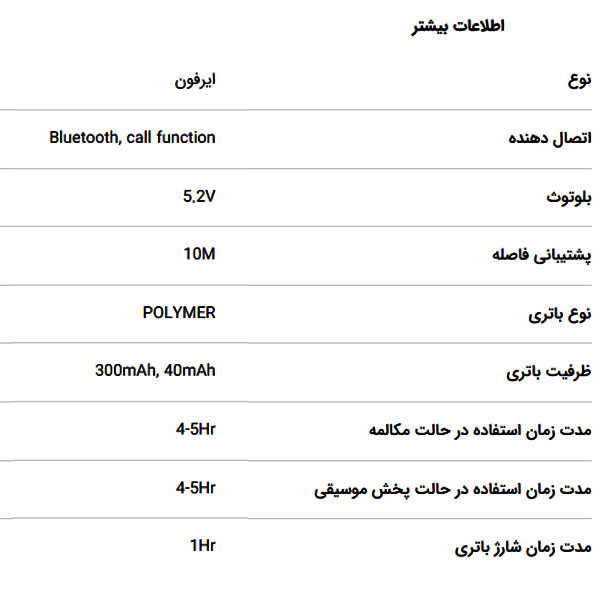 عمر باتری هدفون در حالت مکالمه: 5 ساعت
