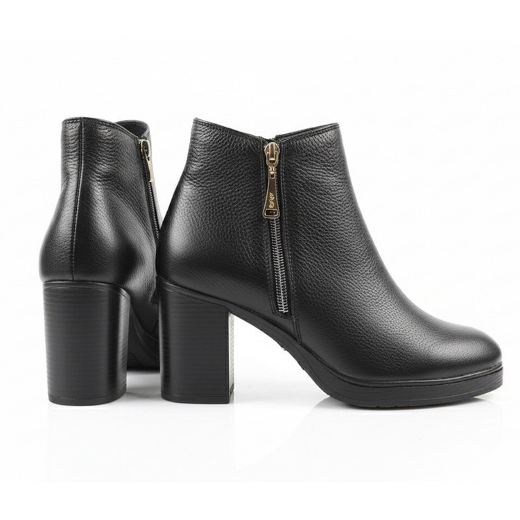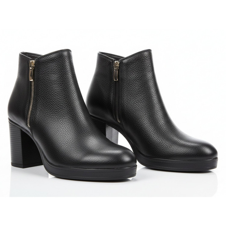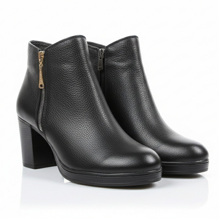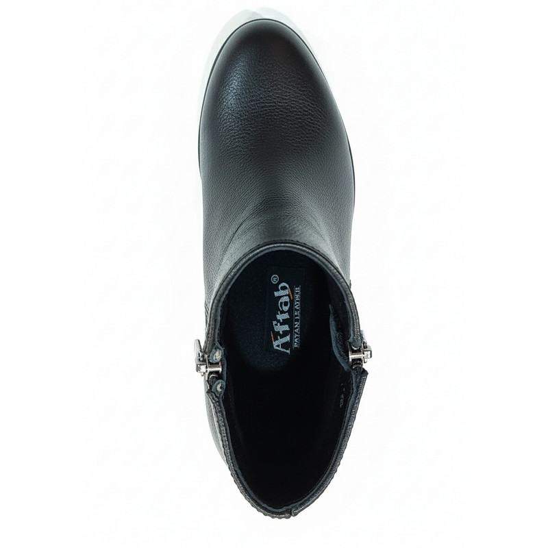 جنس رویه : چرم طبیعی ۱۰۰% (گاوی ) با آستر چرم بزی و سوئیت خز جنس زیره : TPUسبک ، مقاوم ارتفاع پاشنه 6 سانتی متر و ارتفاع ساق 11 سانتی متر استفاده از زیپ در کناره داخلی کفش جهت سهولت استفاده و یک زیپ تزیینی در کناره بیرونی