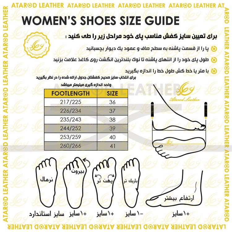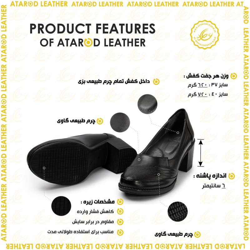 پاشنه تا پنجه تمام چرم طبیعی قسمت رویه کفش تمام «چرم طبیعی گاوی برند چرم عطارد » داخل کفش تمام «چرم طبیعی بزی» کفی «چرم طبیعی بزی» زیره مناسب برای جلوگیری از خستگی در طولانی مدت استفاده از متریال نرم و قابل تنفس