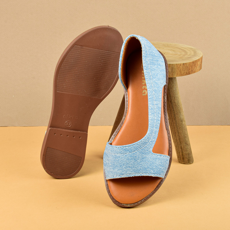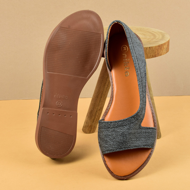 رویه از جنس پارچه جین - طراحی شده توسط برند خوشنام نیکتا سال 2024 - رویه ی چرم مرغوب صنعتی - زیره ی مقاوم پی وی سی - زیره تخت با کفی نرم - دوخت تمیز