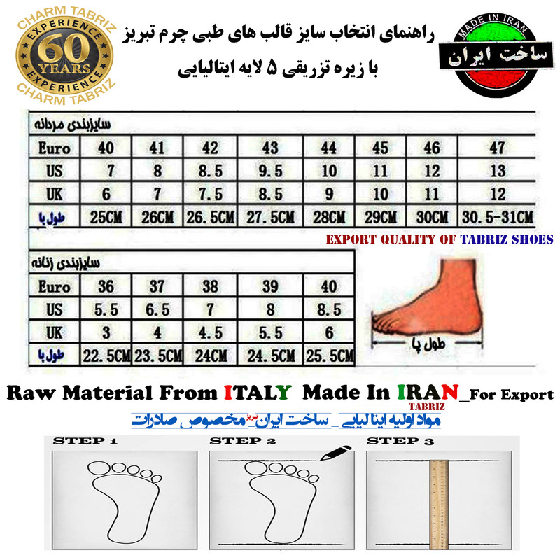 جزئیات: قالب استاندارد و کاملا طبی جهت کاهش فشارهای وارده و رفع خستگی