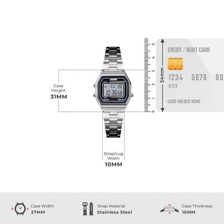 نمایش 24 ساعته , نور پسزمینه , تاریخشمار , آلارم , کرنوگراف , ضدآب