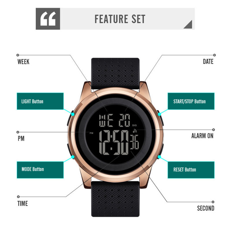 نمایش 24 ساعته , تاریخشمار , نور پسزمینه , آلارم , کرنوگراف