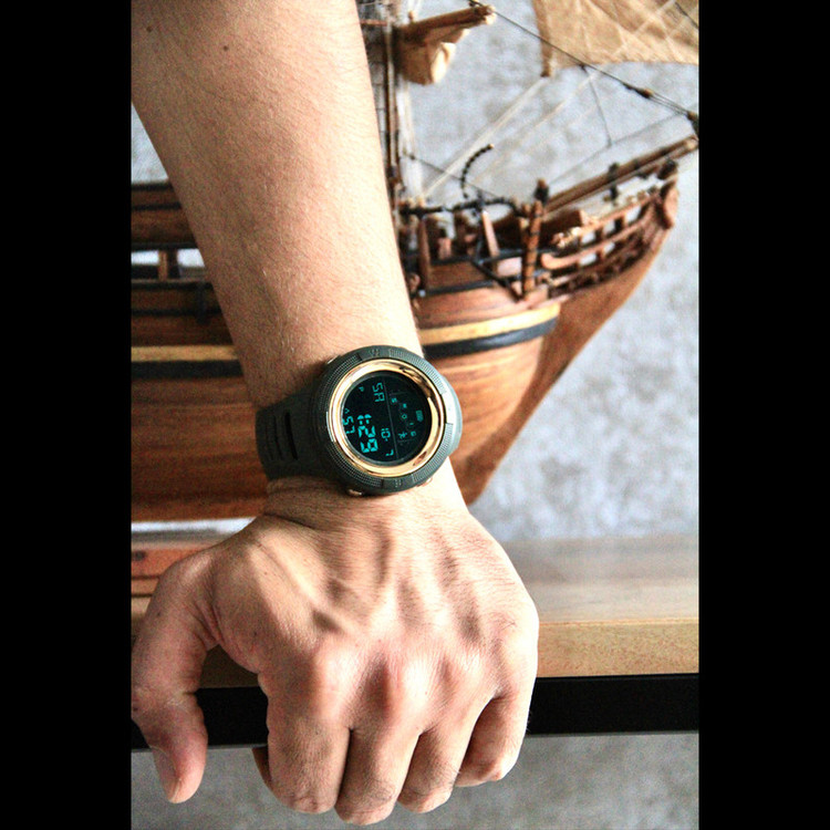- ساعت مچی دیجیتال - دارای بند تک رنگ ساده - دارای شیار روی بند - صفحه ساخته شده از استیل ضد زنگ - قطر صفحه داخلی ساعت 31 میلی متر - ضد آب با قابلیت استفاده هنگام شنا در استخر - قابلیت نمایش روزهای هفته - دارای نور پس زمینه