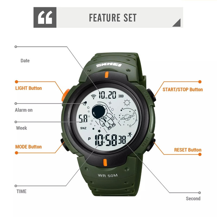 نمایش 24 ساعته , سرعتسنج , تاریخشمار , صفحه طرحدار , نور پسزمینه , تایمر , آلارم , کرنوگراف