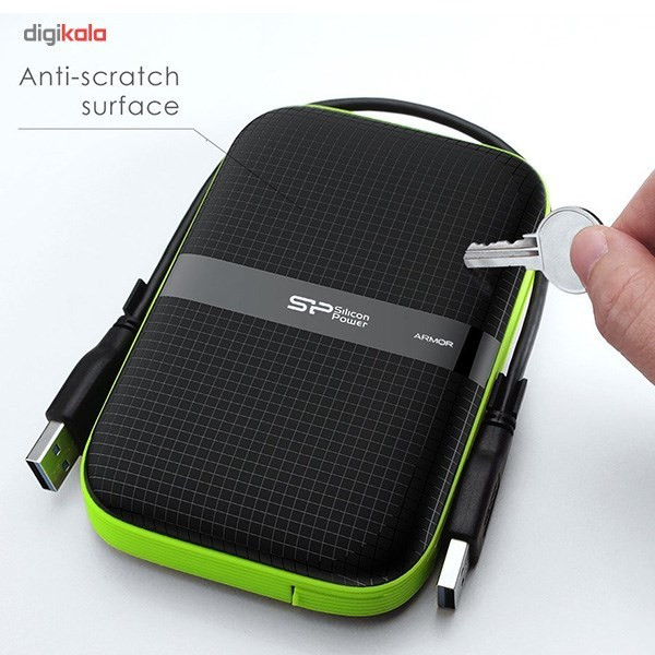 شرکت سیلیکون پاور یکی از بزرگترین طراحان و سازندگان فلش مموری و هارد اکسترنال در دنیا است و هارد دیسکهای اکسترنال Armor A60 محصول این شرکت است. آرمور (Armor) به معنای زره است و هارد دیسک Armor A60 که از همین سری است. بدنهای ضد ضربه، مقاوم در برابر اسپری شدن آب، شوک، لغزش، خط و خش و گرد و غبار دارد. این بدنه به دلیل مقاومت زیادش به زره معروف شده و میتواند از دادههای شما در برابر صدمات ناشی از فعالیتهای روزانه حفاظت کند. این هارد دیسک، تست سقوط آزاد ارتش ایالات متحده آمریکا را با موفقیت پشت سر گذاشته و از سوی سازمانهای معتبر بینالمللی، عنوان محصولی مقاوم در برابر آب را هم کسب کردهاست. بدنه نرم و محکم، رنگ شاد و پرطراوت و طراحی زیبای این محصول، آن را به یک ابزار ذخیرهسازی مدرن و شیک مبدل ساخته است. همچنین ظرفیت این محصول چهار ترابایت بوده و روی بدنه آن یک نشانگر LED برای نمایش وضعیت انتقال اطلاعات تعبیه شده است.