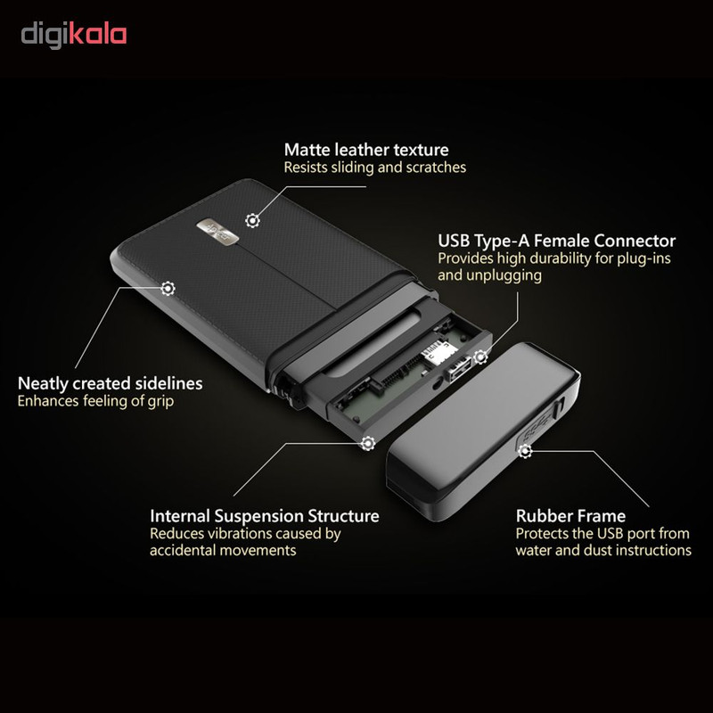 بدنه هارد وزنی معادل ۲۳۸ گرم دارد و ابعاد آن ۱۴۱×۸۸×۱۸.۴ میلیمتر است. ساختار فیزیکی دستگاه مطابق با استاندارد نظامی MIL-STD-810G بخش ۵۱۶.۶ طراحی شده و توانایی تحمل سقوط از ارتفاع ۱.۲ متر را دارد. علاوه بر این، گواهی IP68 نشان میدهد که هارد در برابر نفوذ گرد و غبار کاملاً مقاوم بوده و میتواند تا عمق مشخصی در آب بدون آسیب باقی بماند.