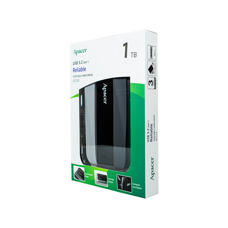 دستگیره های لاستیکی دوگانه AC533 محافظت ایمنی برای محیط بیرونی، کاهش نیروی ضربه و کاهش خطر آسیب دیدگی هارد دیسک را فراهم میکند و به کاربران اجازه میدهد هنگام حمل هارد خود در دنیای واقعی احساس امنیت کنندهارد دیسک قابل حمل AC533 USB 3.2 Gen 1 در سه رنگ چشم نواز عرضه می شود: قرمز گارنتی، آبی پر جنب و جوش و مشکی. رنگی را انتخاب کنید که با سلیقه شما مطابقت داردمدلهای با ظرفیت بزرگ AC533 تا 5 ترابایت فضای ذخیرهسازی را برای نیاز به فضای ذخیرهسازی انبوه شما مانند فایلهای حجیم، تماشای فیلمهای HD و یا مرور مجموعه تصاویر در حال حرکت، ارائه میکنند.هارد دیسک قابل حمل AC533 USB 3.2 Gen 1 با رابط استاندارد USB 2.0 سازگار است. چراغهای LED دو رنگ به ترتیب وضعیت انتقال USB 3.0 (آبی) یا USB 2.0 (قرمز) را نشان میدهند و به وضوح حالت فعلی درایو را شناسایی میکنند. کاربران میتوانند با یک نگاه وضعیت را تعیین کنند.