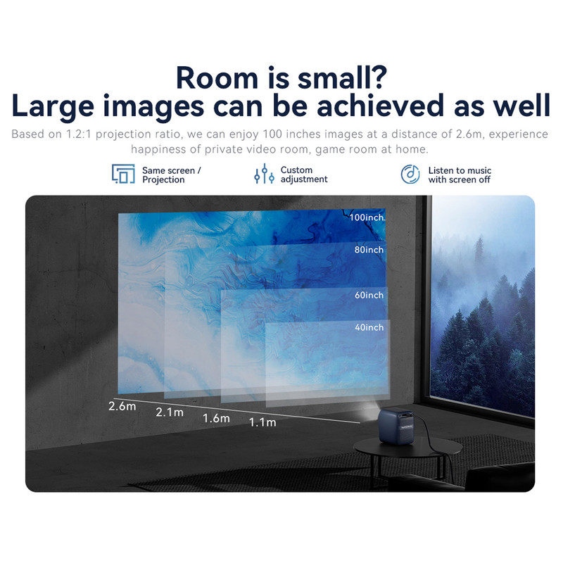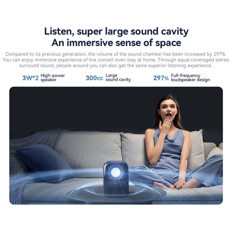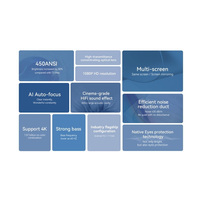 روشنایی:450 لومن رزولوشن:1920x1080 p کنتراست تصویر:1:2000 سیستم عامل:اندروید ورژن 9 حافظه داخلی:1+16 گیگابایت نسخه بلوتوث:ورژن 4 وزن:1.1 کیلو گرم وای فای:2.4G زوم : اتوماتیک