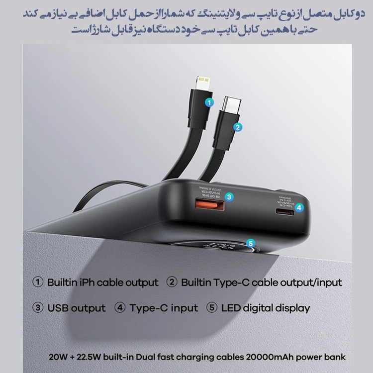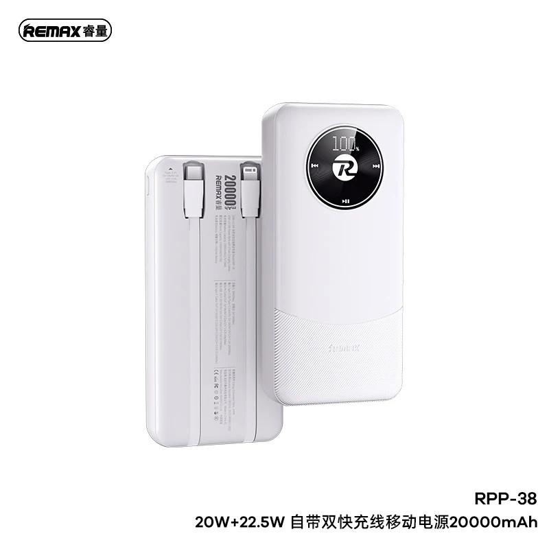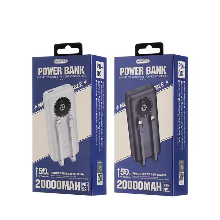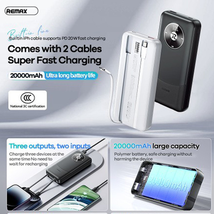 پاوربانک ریمکس مدل Fast Charge 2way ظرفیت 20000 میلی آمپر ساعت به همراه کابل USB-C و لایتنینگ