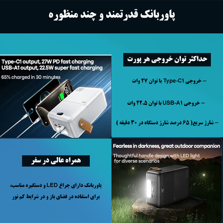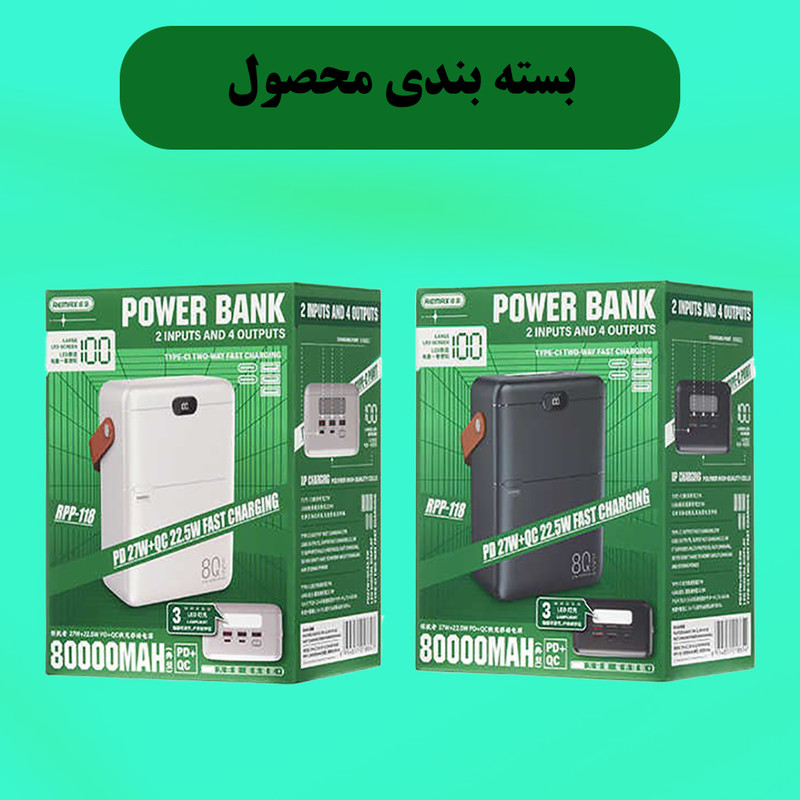 ظرفیت 80000 میلی آمپر ،دارای 2 درگاه ورودی و 4 درگاه خروجی،دارای باطری لیتیوم یونی