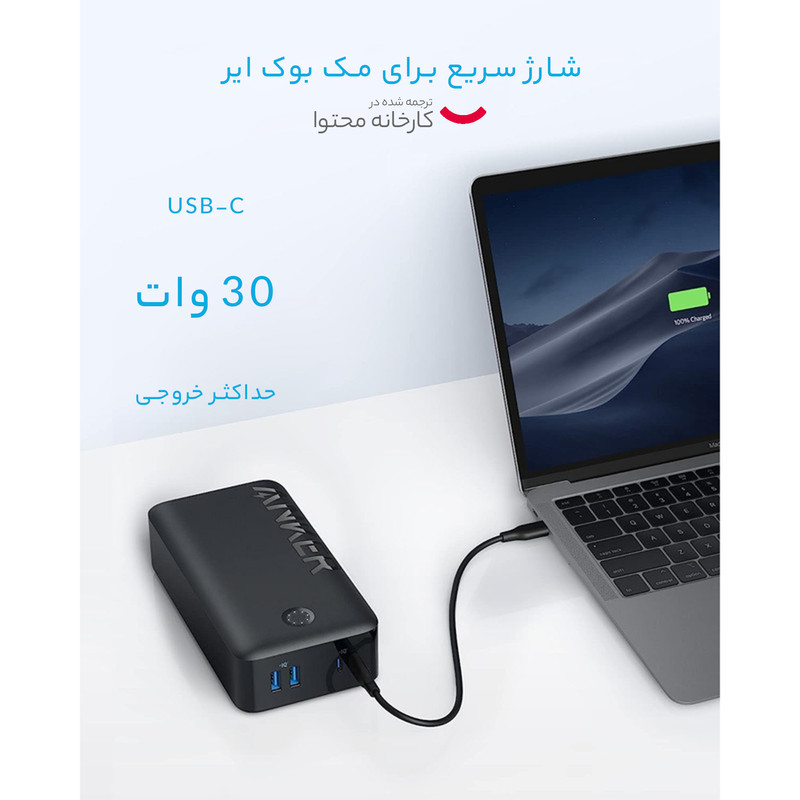 • توان خروجی USB C تا 30 وات