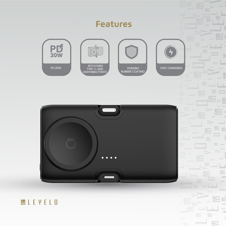 مشخصات فنی: Capacity: 5000mAh Wireless Output: 15W Type-C Input: 5V/2.4A, 9V/2A, 12V/1.5A (18W) Type-C Output: 5V/2.4A, 9V/2.22A, 12V/1.67A (20W) Lightening Output: 5V/3A, 9V/2.22A, 12V/1.67A iWatch Output: 2.5W