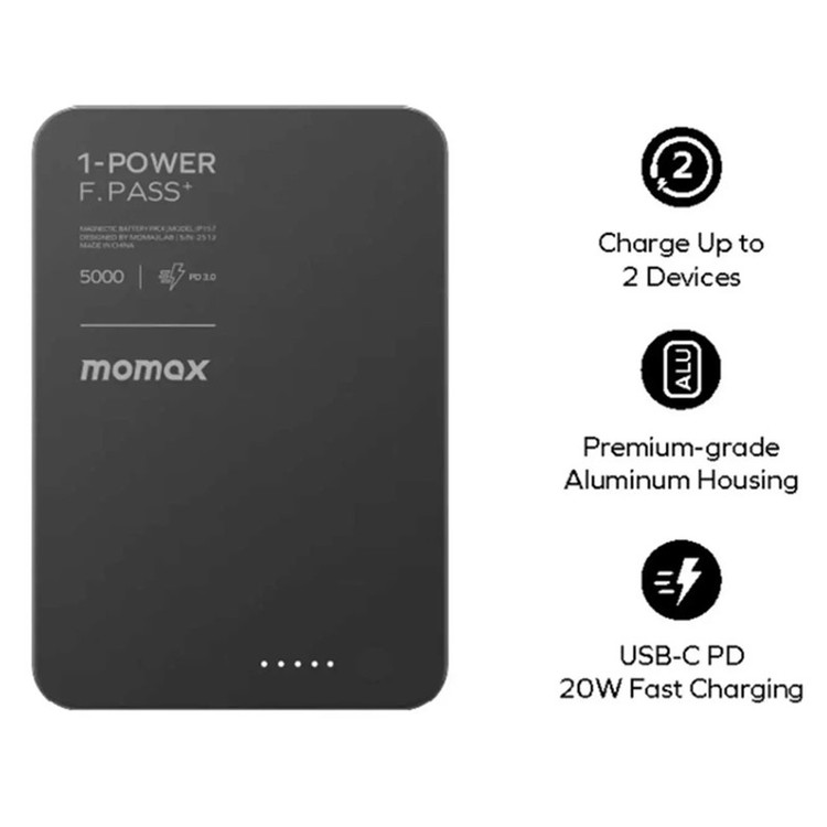 پاوربانک بی‌سیم 20 وات مومکس مدل IP157 ظرفیت 5000 میلی‌آمپرساعت