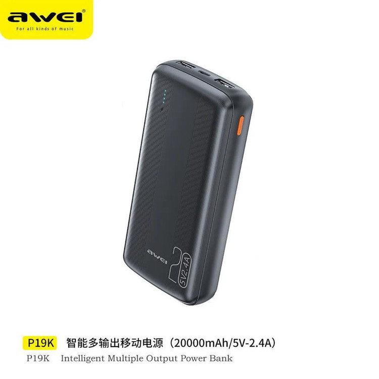 پاور بانک فست شارژ 20000 اوی Awei P19K 2.4A 12W شارژر همراه اوی مدل P19K با ظرفیت 20000 میلی آمپر ساعت